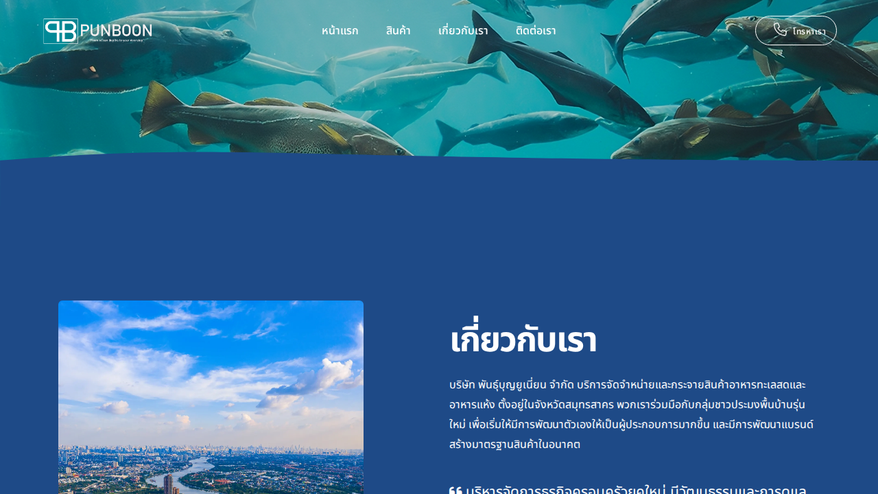 เว็บไซต์ของบริษัท พันธุ์บุญยูเนี่ยน จำกัด ผู้จัดจำหน่ายอาหารทะเลสดและแช่แข็งคุณภาพสูงจากแหล่งต่างๆ ทั่วโลก มุ่งเน้นการสร้างความสัมพันธ์ที่ดีกับลูกค้าและชาวประมงพื้นบ้าน